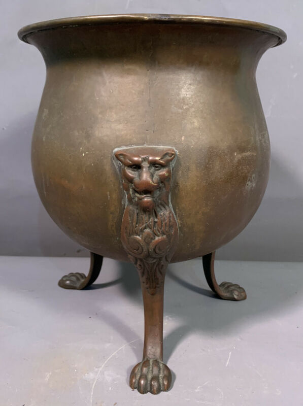 Antique VICTORIAN Style BRASS Figural GRIFFIN BUST Old CLAW FOOT Plant PLANTER