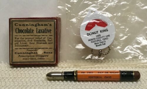 Title (ebay affiliate link): 3 Fostoria Ohio Advertising Items Drug Store Box Bullet Pencil Donut King Dial