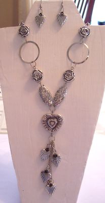 ANTIQUE LONG SILVER CHAIN NECKLACE AND EARRING SET