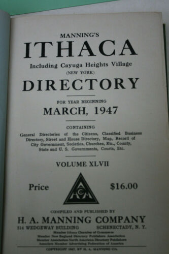Title (ebay affiliate link): 1947 Manning''s Ithaca New York City Directory includes City Map