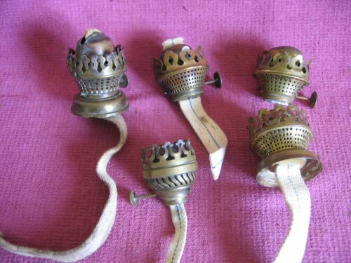 Title (ebay affiliate link): Collection of 5 Brass Oil / Paraffin Lamp Burners - Job Lot