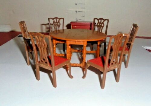 HTF VINTAGE MARX CO. ROUND FOLDING TABLE & CHAIRS DOLL HOUSE FURNITURE!! 1964