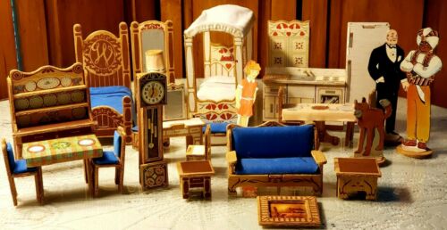 Title (ebay affiliate link): Vintage Orphan ANNIE 21 piece Wood Dollhouse Furniture + 4 cardboard figures