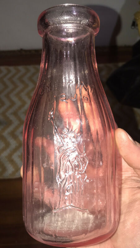 Title (ebay affiliate link): **Rare** Vintage Light Pink Liberty Milk Co. Buffalo NY Glass 1 Pint Milk Bottle
