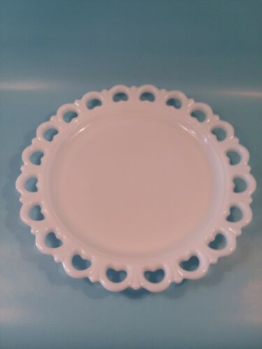 Vintage Milk Glass Round Cake Platter Heart Design