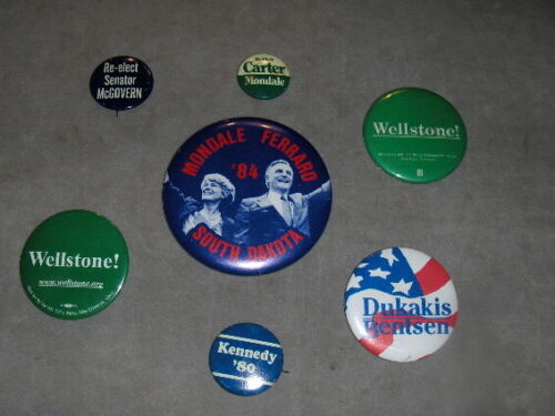 Title (ebay affiliate link): 7 Vintage DEMOCRAT Presidential Campaign PINBACKS Pins Buttons