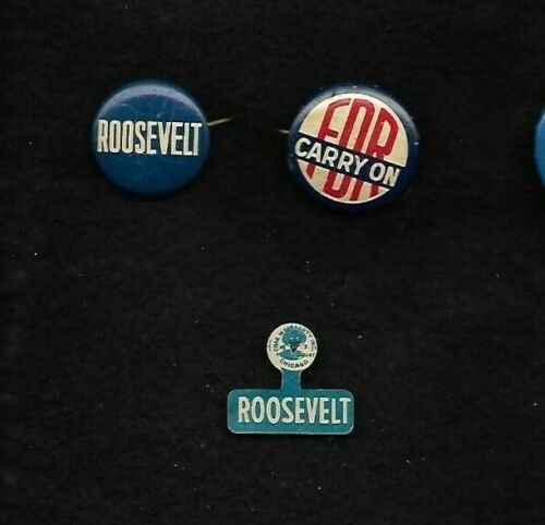 3 original FDR Franklin Roosevelt Presidential campaign litho buttons: Carry On
