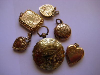 6 x Antique Gold B&F Photograph Lockets NO RESERVE