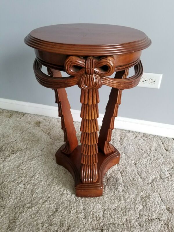 Title (ebay affiliate link): Lovely End Table round hand carved wood plant stand?