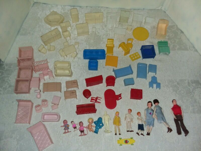 Title (ebay affiliate link): Vintage Plastic Dollhouse Furniture Mixed Sizes & Brands 65 Pcs + Dolls