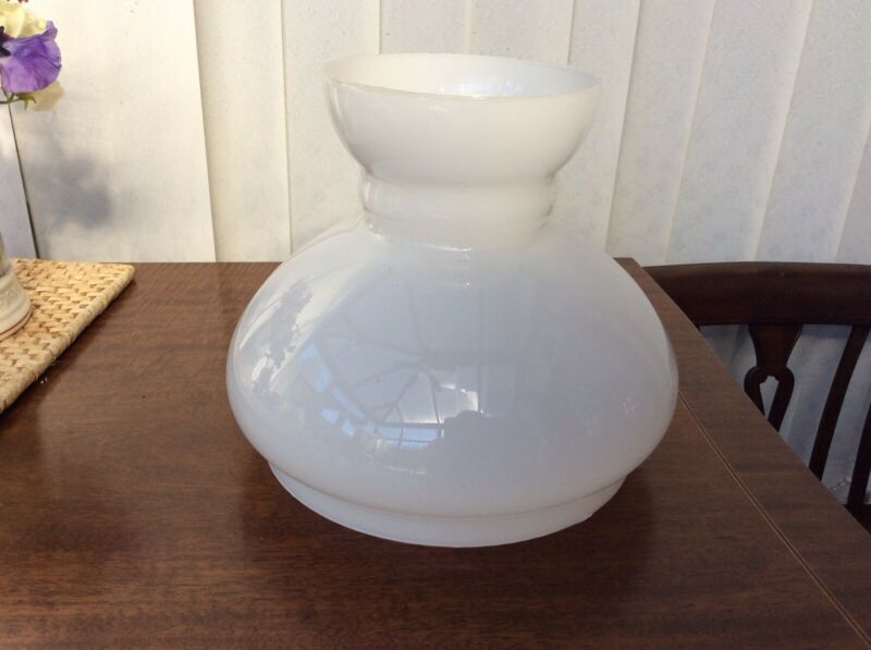 Vintage Oil Lamp Shade White Glass 18cm Tall 18.5cm Wide At Base Good Condition