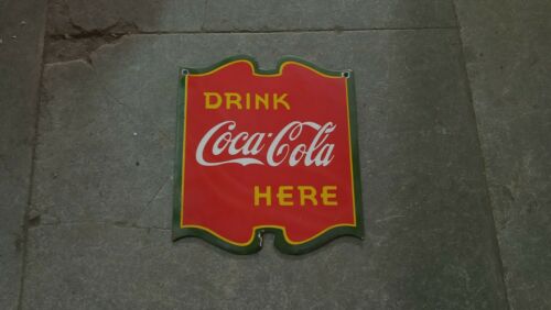 Title (ebay affiliate link): Porcelain Drink Coca Cola Here Enamel Sign 7" x 8" inches