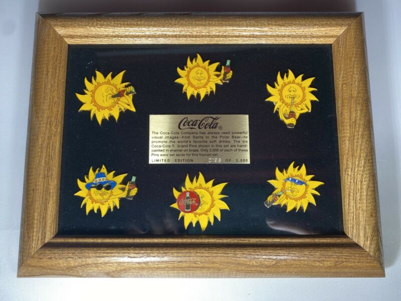 Title (ebay affiliate link): Coca Cola Limited Edition Sun Pin Set 0196/2000 Framed 6 pins