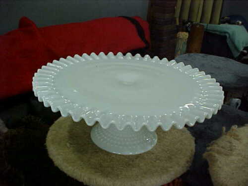 Title (ebay affiliate link): Vintage Fenton Ruffled Edge Hobnail Milk Glass Cake Display Platter Stand 13"