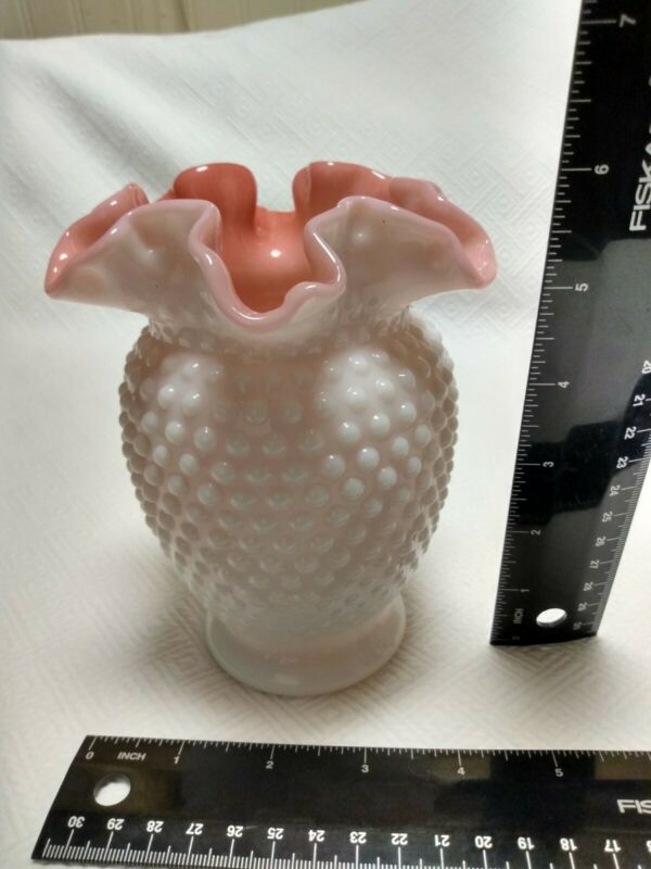 Title (ebay affiliate link): Fenton Vintage Peach Blow Milk Glass Hobnail Crimped Vase 6" MINT HTF