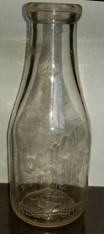 Vintage Menzie Dairy McKeesport PA One Quart Milk Glass Bottle Embossed.