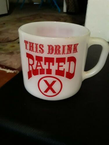 Title (ebay affiliate link): Vintage Federal Heat Proof Milk Glass Mug This Drink Rated X Red Writing Rare
