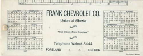 Title (ebay affiliate link): 1934 Desk Calendar & Ruler Frank Chevrolet Co., Portland, OR Advertisement