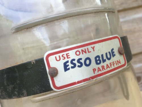Vintage ESSO BLUE Paraffin Glass Bottle Fuel Can Dispenser Swing Handle 50s 40s