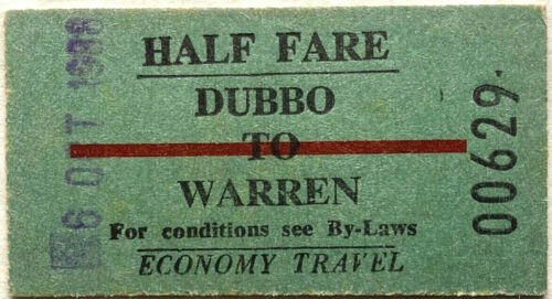 Title (ebay affiliate link): NSWR Ticket - DUBBO to WARREN - 1988 Half Fare Economy Single