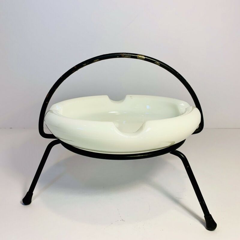 Title (ebay affiliate link): ATOMIC Vintage Mid Century Round Milk Glass Black Wire Ashtray Big For Cigars!