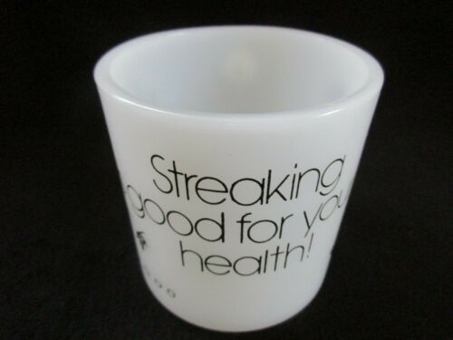 Vtg Milk Glass STREAKING IS GOOD FOR YOUR HEALTH Streakers 70''s MUG Hazel Atlas