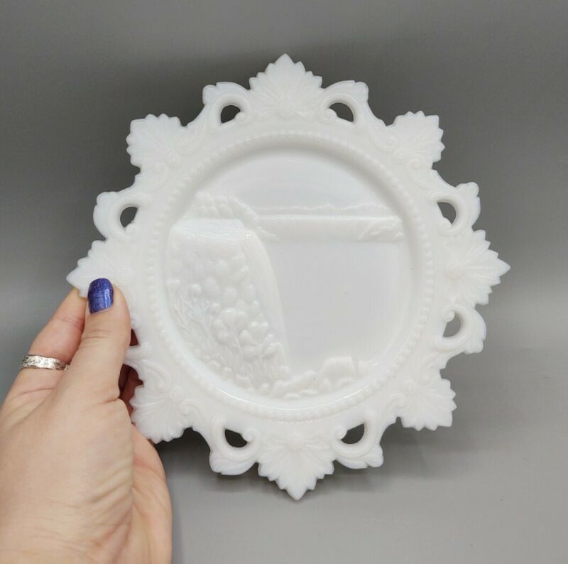 Title (ebay affiliate link): Antique EAPG White Milk Glass Waterfall Niagra Falls Decorative Plate Dish