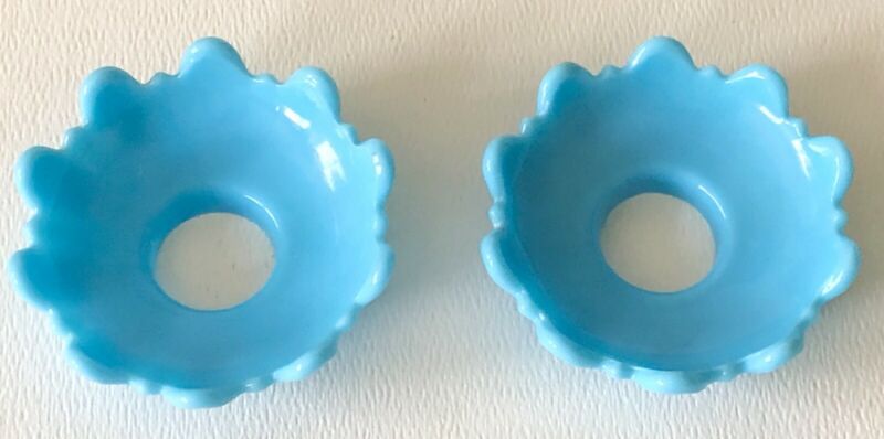 Vintage French Blue Opaline Milk Art Glass Chandelier Candle Drip Bobeches Set 2