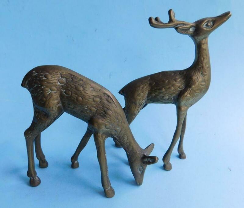 Nice Pair Of Solid Brass Deer Ornaments c1970s Retro