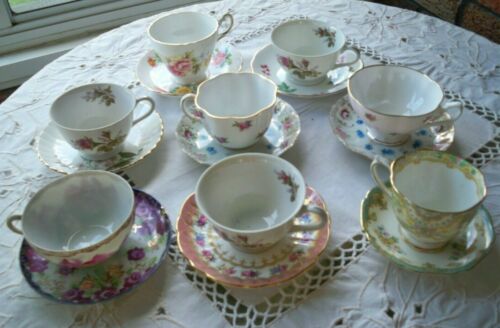 Title (ebay affiliate link): Vintage Lot of Mismatched 8 Teacups & 8 Saucers~Bone China~Japan~England~More