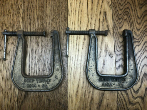 Title (ebay affiliate link): 2 Vintage Pearlitic Deep-Throat C-Clamps. 2.5" cap. Made in USA.