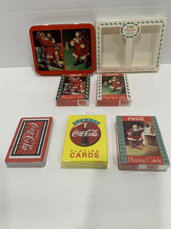 Title (ebay affiliate link): Lot of 5 Coca Cola playing cards 2 in tins, new and sealed