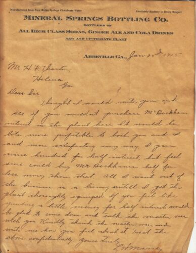 Title (ebay affiliate link): MINERAL SPRINGS BOTTLING CO. LETTERHEAD DATED Jan. 25, 1915 105 YEARS OLD
