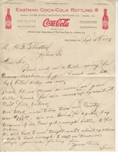 Title (ebay affiliate link): EASTMAN COCA-COLA BOTTLING CO. LETTERHEAD DATED SEPT. 16t/h - 1916
