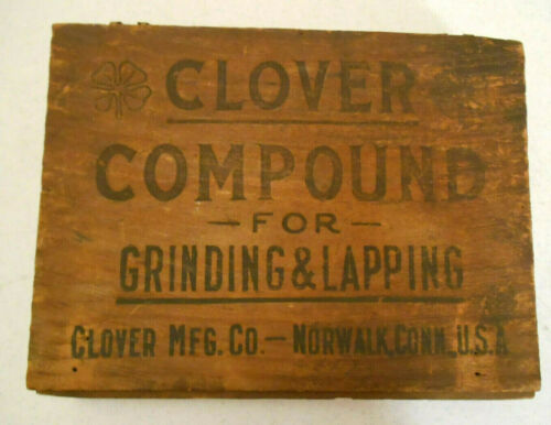 Vintage Old Antique Clover Valve Grinding Compound Wood Wooden Display Box Tin