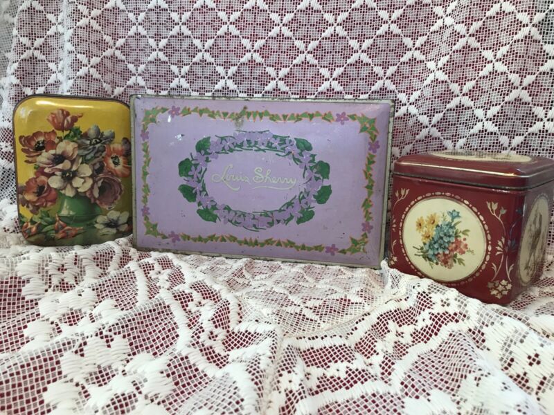 Antique Vintage Tin Containers Lot Of 3 Louis Sherry Bluebird Toffee - Holland