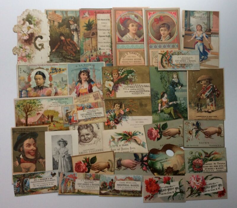 Vintage Lot of 30 Victorian Advertising Trade Cards - Women, Flowers, Children