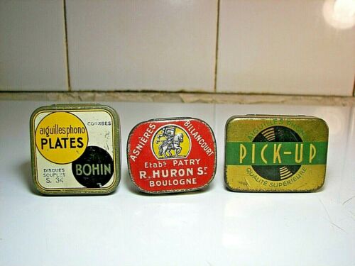 Title (ebay affiliate link): Lot 3 Rare French Ad Gramophone Needle Tins 1930 Konvolut Nadeldosen