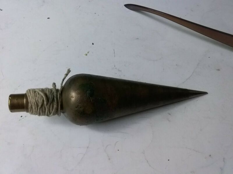 Title (ebay affiliate link): Vintage Brass Warren Knight Co Plum Bob with Steel Tip in Leather Holder