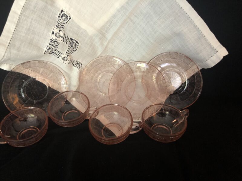 Title (ebay affiliate link): vintage pink Tiffany glassware, 4 cups and saucers