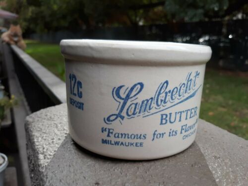 Vintage LAMBRECHT BUTTER Stoneware Advertising CROCK Milwaukee chicago USA