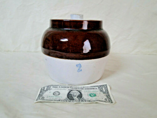 Antique Vintage 2 QUART Primitive Stoneware Ceramic Crock with Original Lid