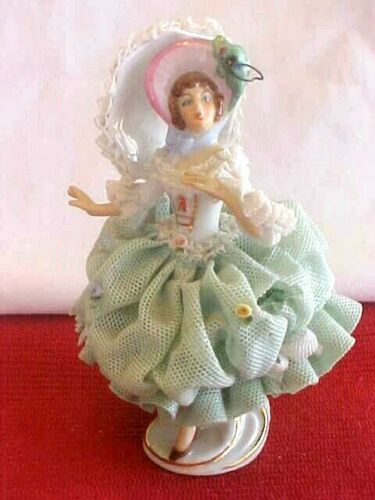 Title (ebay affiliate link): Antique Dresden German Porcelain GREEN Lace Lady Figurine with Parasol & Bonnet