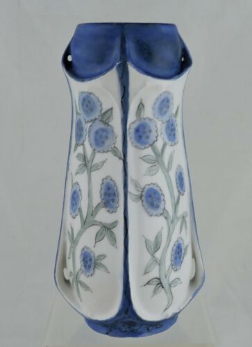 ANTIQUE AUSTRIA SMALL VASE HAND PAINTED BLUE LOTUS FLOWERS SIGNED