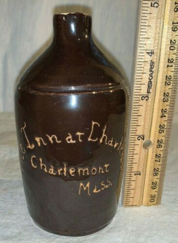 Title (ebay affiliate link): ANTIQUE THE INN AT CHARLEMONT MASS ALBANY SLIP SCRATCH STONEWARE MINI JUG CROCK