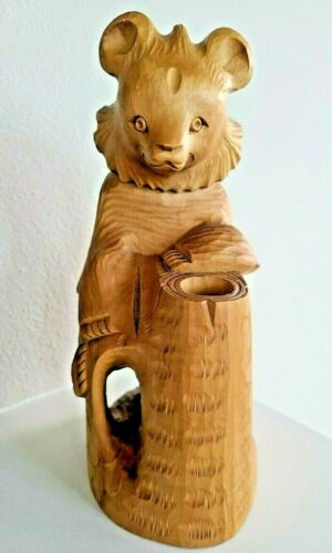 Vintage Russian Hand Carved Wooden Bear Cub - 9-1/4"H
