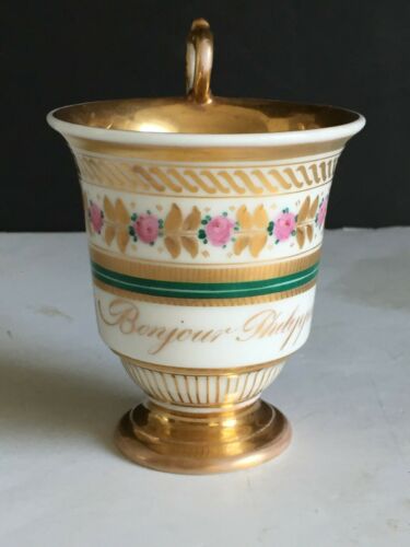Antique Fine French Old Paris Porcelain Cabinet Cup BONJOUR PHILIPPINE 4 3/8"