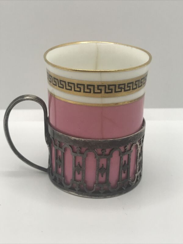 George Jones & Sons Crescent Porcelain Demitasse Cup W Sterling Silver Holder