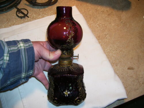 Antique P&A Hornet Purple Amethyst Glass Oil Lamp