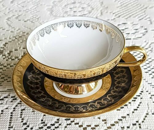 Vintage RW Rudolf Wachter Bavaria Black and Gold Cup & Saucer